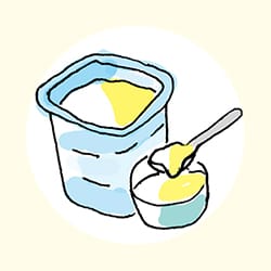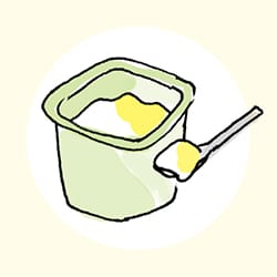 発酵乳製品の代表格である「ヨーグルト」は、ミルク(乳)を乳酸菌や酵母の働きで発酵させたもの。牛をはじめ、ヤギ・羊・水牛・馬などの乳を原料にしたさまざまな種類があり、世界各地で親しまれています。牛乳を原料とするヨーグルトには、たんぱく質やビタミンB2、パントテン酸、ビタミンA、カルシウムなど、牛乳の栄養価がそのまま受け継がれています。また、それらが発酵の過程で分解されて消化吸収が良くなるため、牛乳よりも効率的にとり入れることができます。さらに、乳酸菌により牛乳に含まれる乳糖が分解されるので、牛乳を飲むとお腹がゆるくなる人でも安心して食べることができます。